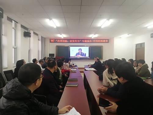 然后,根据关于组织收看省委“改革创新 奋发有为”首场报告会的通知要求,全体教师观看了“中科院杨建华报告视频”,杨建华教授详细解读了深圳先进院改革创新模式和主要做法,并指出领导班子建设和队伍建设是先进院模式成功实践的重要保障等宝贵经验。