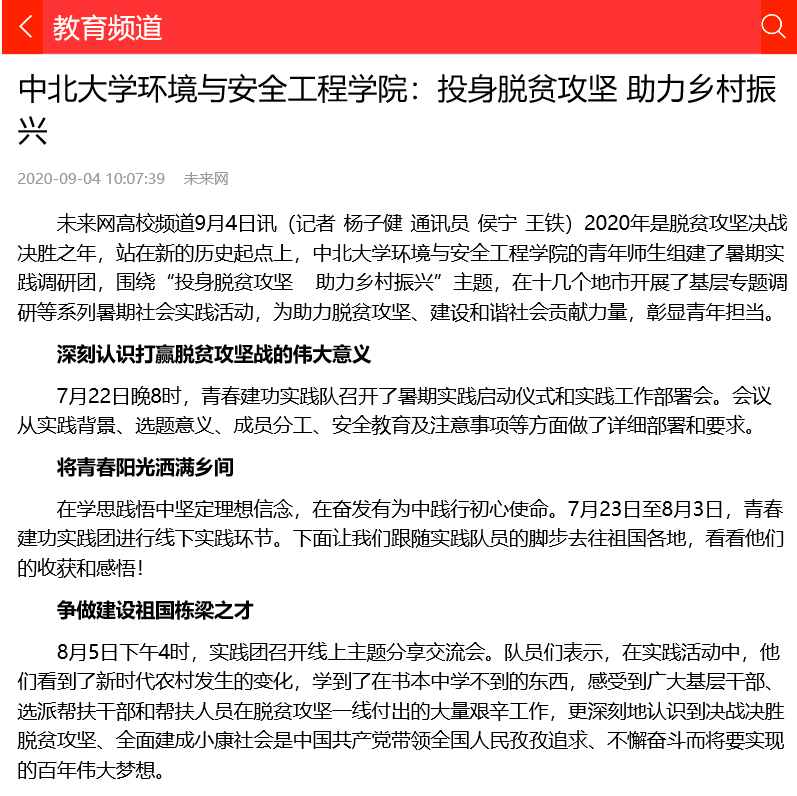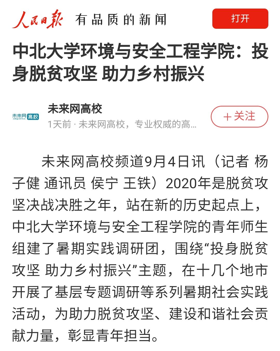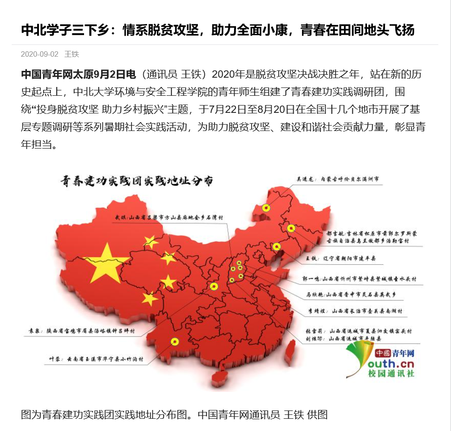 9月2日,《中国青年网》以《中北学子三下乡:情系脱贫攻坚,助力全面小康,青春在田间地头飞扬》为题,对此进行了报道。同时,人民日报新媒体平台、未来网、今日头条、山西青年报、人妻av