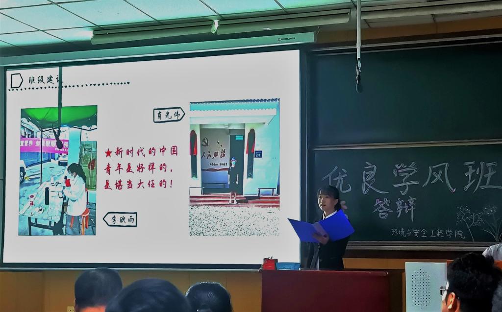 经过前期的班级建设考核与资格审查,共有十个班级顺利进入最终的答辩环节。在答辩过程中,各班答辩人从思想建设、班风建设、学风建设、班级荣誉几个方面对班级情况进行汇报与总结,通过图表数据和丰富的图文,分享了疫情期间班级同学不忘自我提高与抗疫奉献社会的时刻,同时对班级未来的发展做出规划与展望。