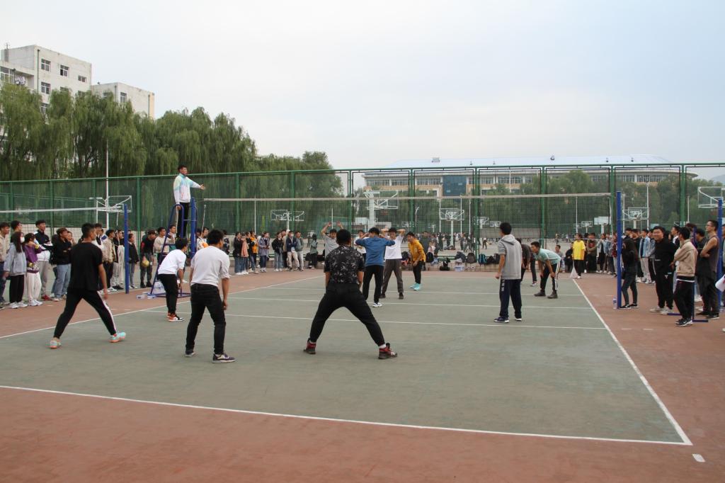 各位老师与学生进行排球友谊赛,老师与学生之间相互比拼,在球场上大展风采。