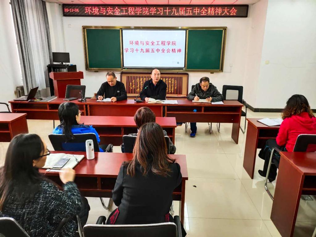 在科学楼C座西901会议室召开学习贯彻党的十九届五中全会精神大会。学院全体教职工参加会议,会议由党委书记赵树森同志主持。