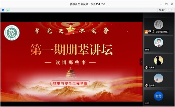 2021年4月12日19:00,第一期朋辈讲堂——“读博那些事儿”正式开讲。讲堂采用线上会议形式,邀请了哈尔滨工业大学的孙淼、北京理工大学的梁家豪、武汉理工大学的衡怡君、西安交通大学的高宏飞以及人妻av