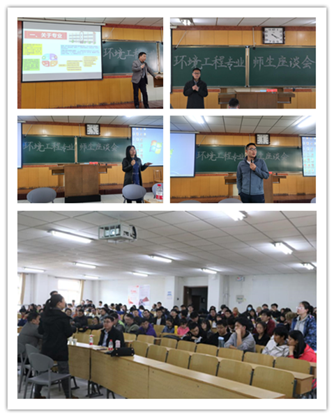 系主任卢静老师介绍了环境工程专业发展的历史,并针对本科生培养方案、实验室情况、学生就业、考研出国等情况进行了详细讲解。王海芳等专业教师就环境工程的专业方向做了详细介绍,并对大学的生活学习等规划提出了指导意见和建议。