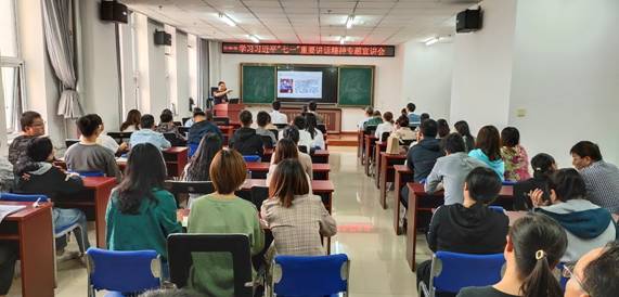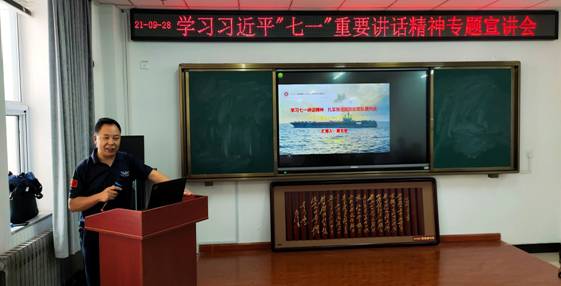 党史学习教育宣讲团成员——蔺玄晋同志作了题为《学习习近平“七一”讲话精神,扎实推进国防和军队现代化建设》的专题讲座。全体教工党员和学生党员参加了宣讲会,会议由综合办主任秦胜东同志主持。