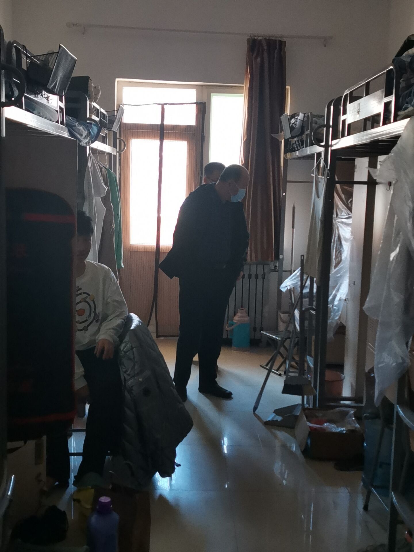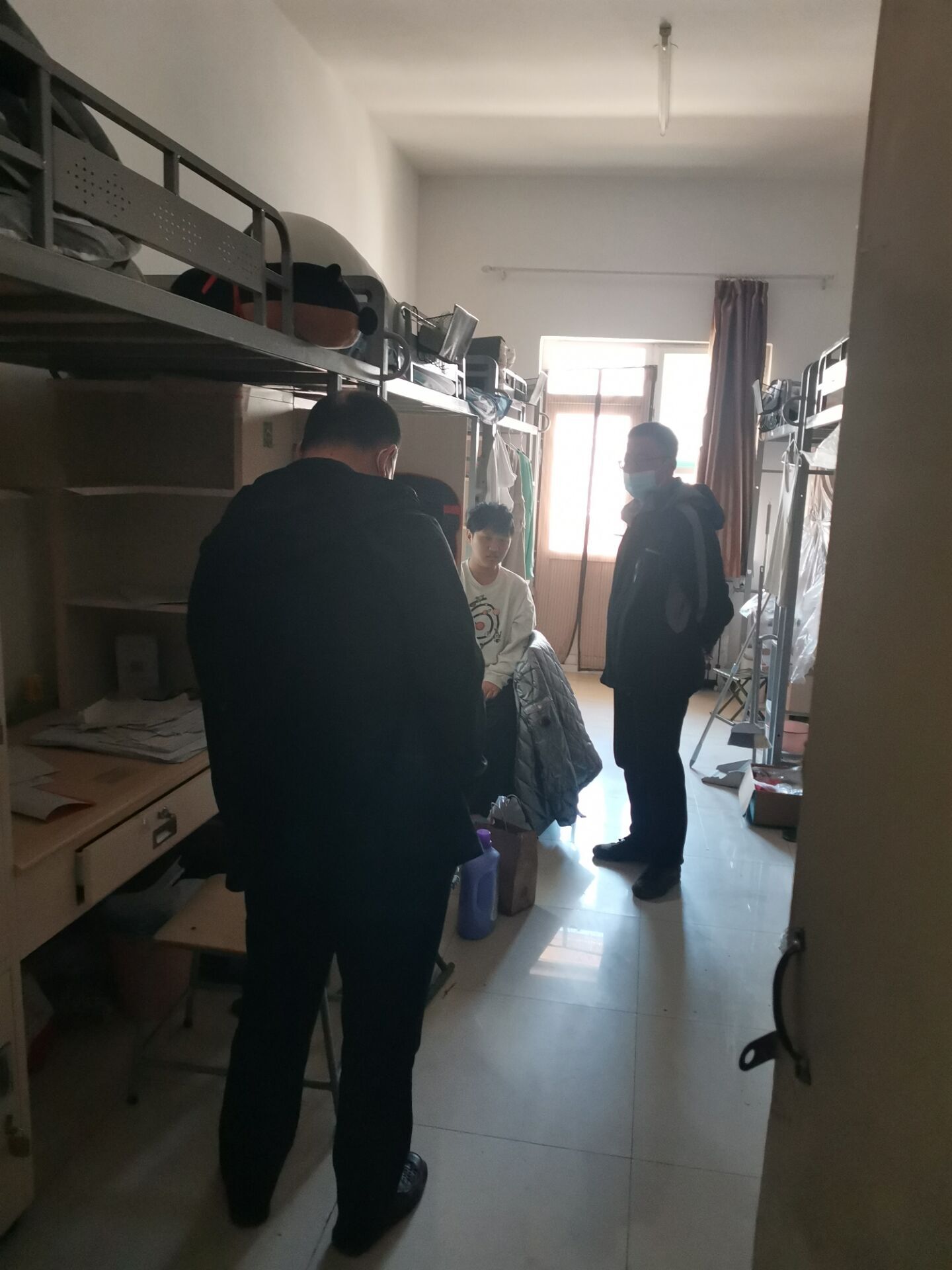 党委书记赵树森、副书记张少明及全体辅导员深入宿舍检查疫情防控工作。