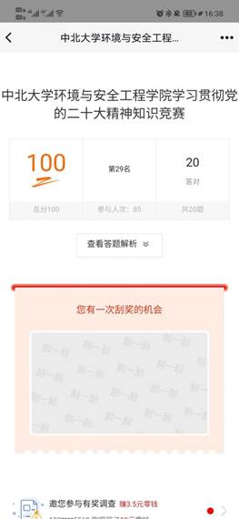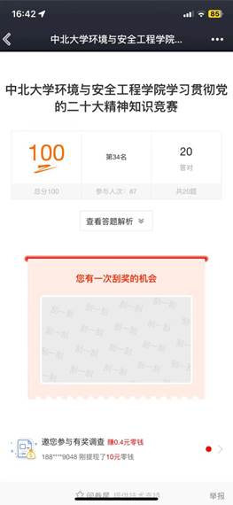 此次竞赛内容涵盖了中国共产党党史、《中国共产党章程》、党的二十大报告等内容,营造了“以考促学、以学验知、以知笃行”的浓厚学习氛围,进一步激发了广大党员同志们的学习热情,加深了大家对党史、党章、党纪、党的二十大精神的认识与理解,巩固检验了党史学习教育常态化的学习教育成果。