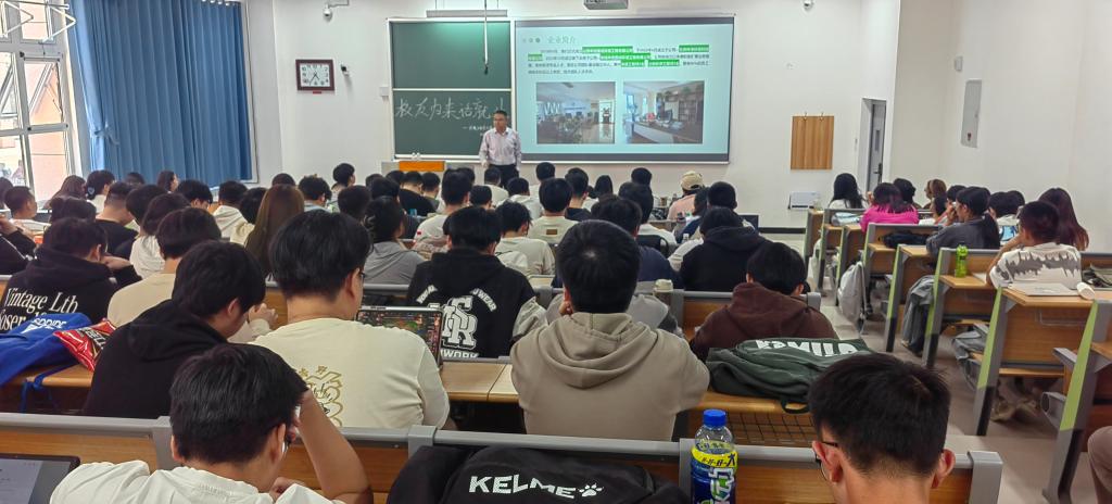 李诚首先以“环境工程职业规划”为主题,从“你来问,我来答”引发同学们的思考并提出心中的疑惑。然后,他以自身经历为例,进一步为同学们介绍了专业未来职业的选择规划以及如何在入职后尽快融入工作岗位提升自己。这无疑为同学们对于环境工程专业的前景增添了信心,也帮助同学们铺垫了之后的就业方向和奋斗目标。最后,李诚热情地邀请同学们在假期期间加入他的企业进行实习探索,从而进一步体会到环境工程专业的美好前景,更加坚定自己对未来的选择。