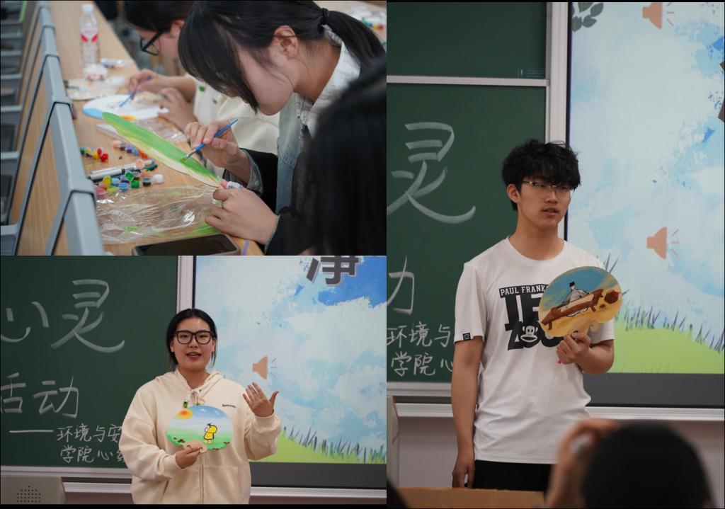 本次活动共分为三个环节,第一个环节由参加活动的学生挑选心仪的扇形和颜料,在轻松的音乐氛围里开始构思和绘制,第二个环节绘制好的选手上台展示并介绍自己的作品,评委根据选手的表现从色彩、构思、设计、视觉效果、含义五个方面打分,第三个环节将为获得最佳色彩奖、最佳构思奖、最佳设计奖、最佳视觉奖和最佳含义奖的五位选手颁发奖状和奖品并合影留念。