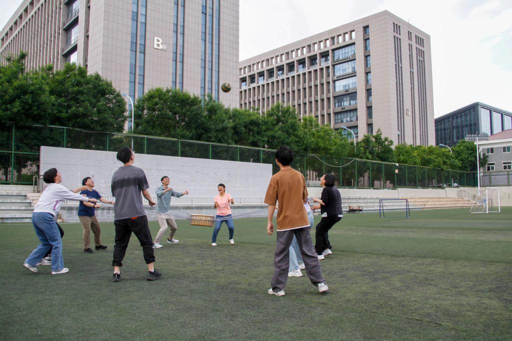 教工素质拓展训练活动。教工素质拓展活动共分6队,每队推选一名队长,队长负责组织、协调和分配本队队员参加各项活动,包括队名、口号、队歌的制定和顺利完成,以及破冰行动、神笔马良和同心鼓等项目。