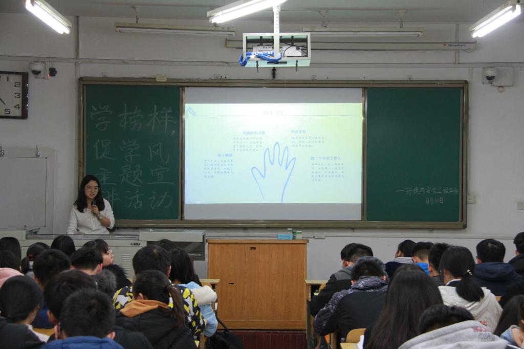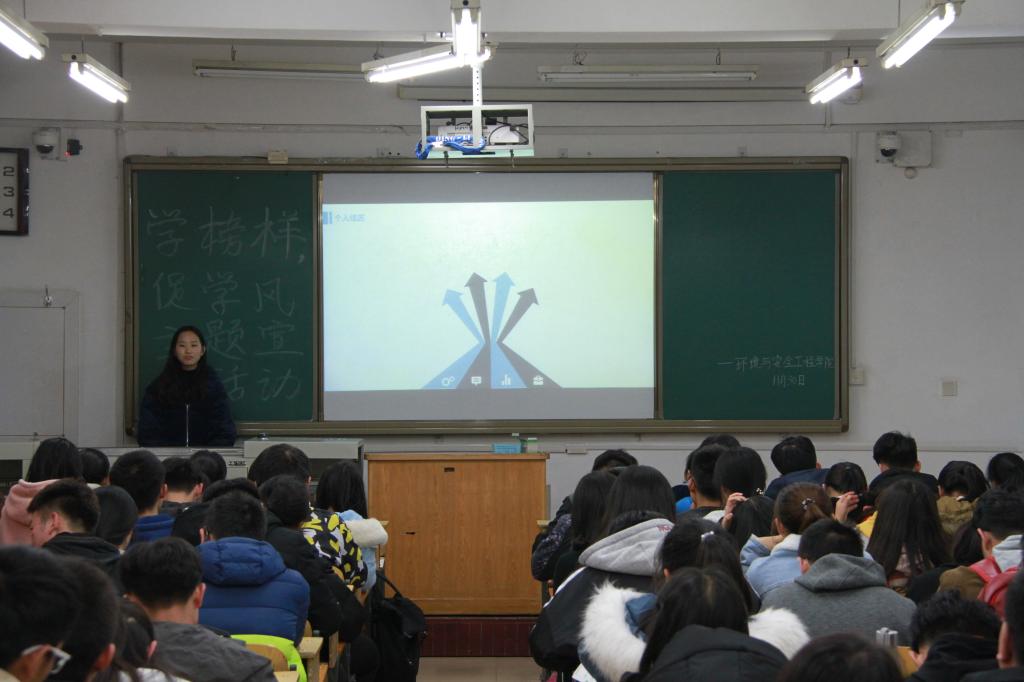 于2018年11月30日邀请五位国家励志奖学金获得者,为17、18级所有贫困生及各班全体班委开展“学榜样,促学风”主题宣讲会。